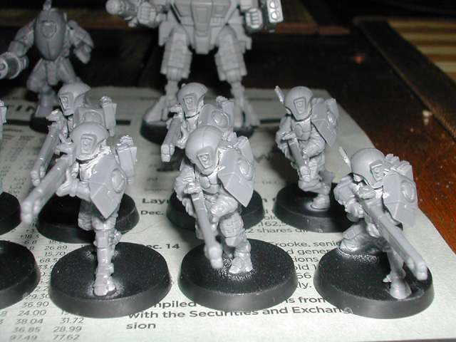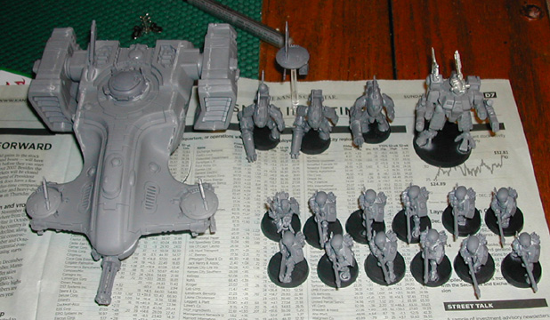 I still have 4 more gun drones, 12 kroot, and a crisis suit to put together, but those can wait until I can stock back up on superglue. After that, I get to embark upon the journey of painting them.